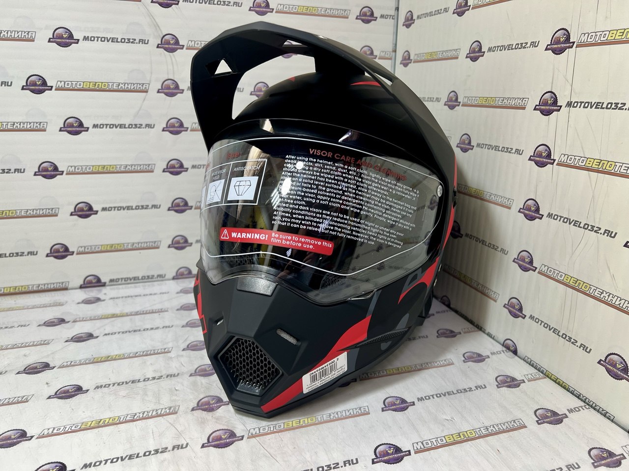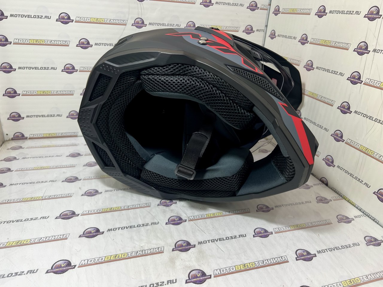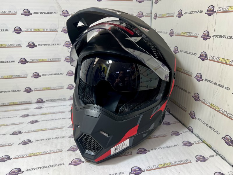 Щлем KIOSHI Fighter 802 мотард с очками (черный, серый, красный) L