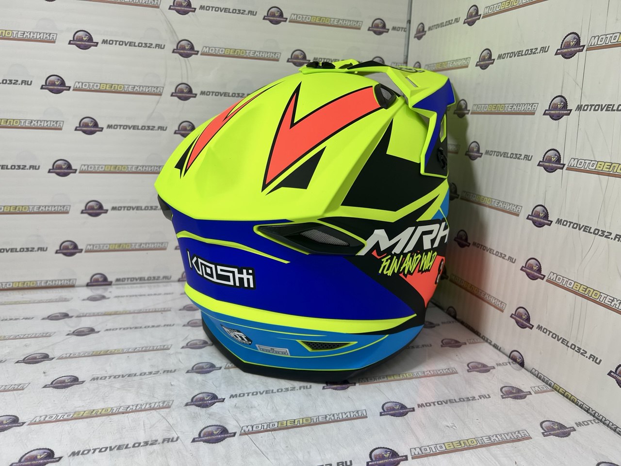Шлем кроссовый KIOSHI Holeshot 801 (черный, синий, оранжевый,желтый) S